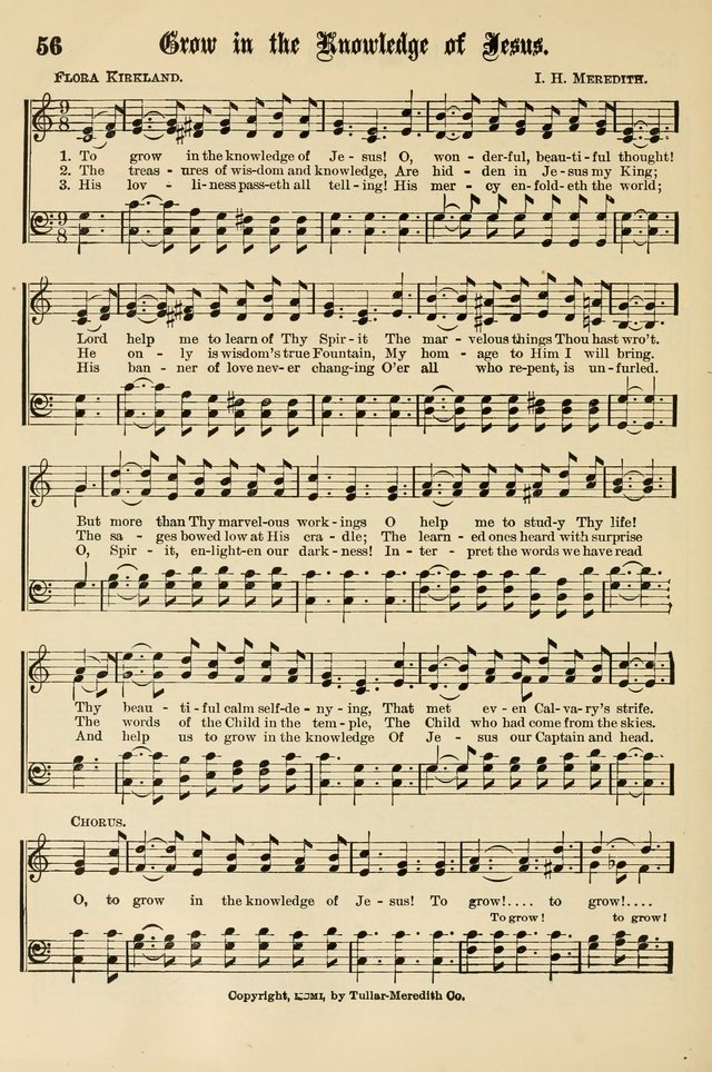 Display Title: Grow in the Knowledge of Jesus First Line: To grow in the knowledge of Jesus! Tune Title: [To grow in the knowledge of Jesus!] Author: Flora Kirkland Date: 1903 Subject: Character Building | ; Jesus Christ |