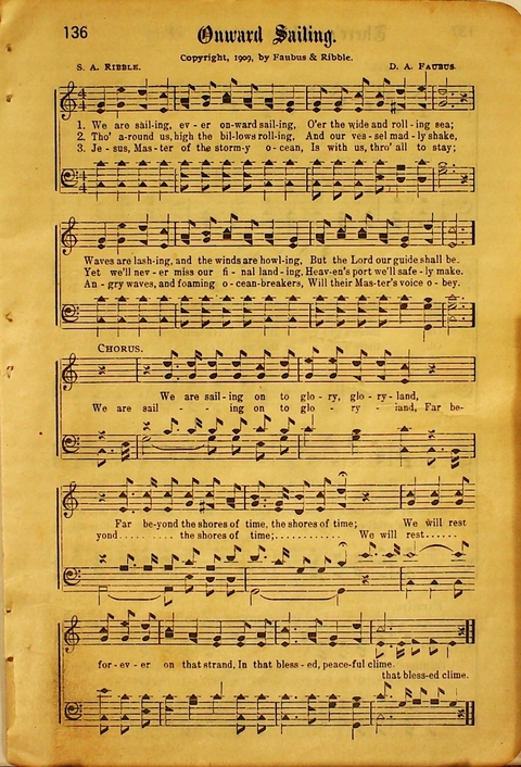 Tune: [We are sailing, ever onward sailing]
