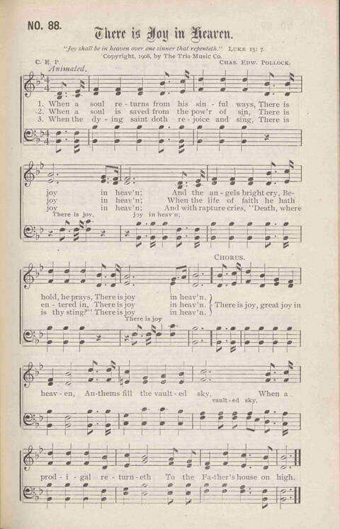 Display Title: There is Joy in HeavenFirst Line: When a soul returns from his sinful waysTune Title: [When a soul returns from his sinful ways]Author: C. E. P.Date: 1909