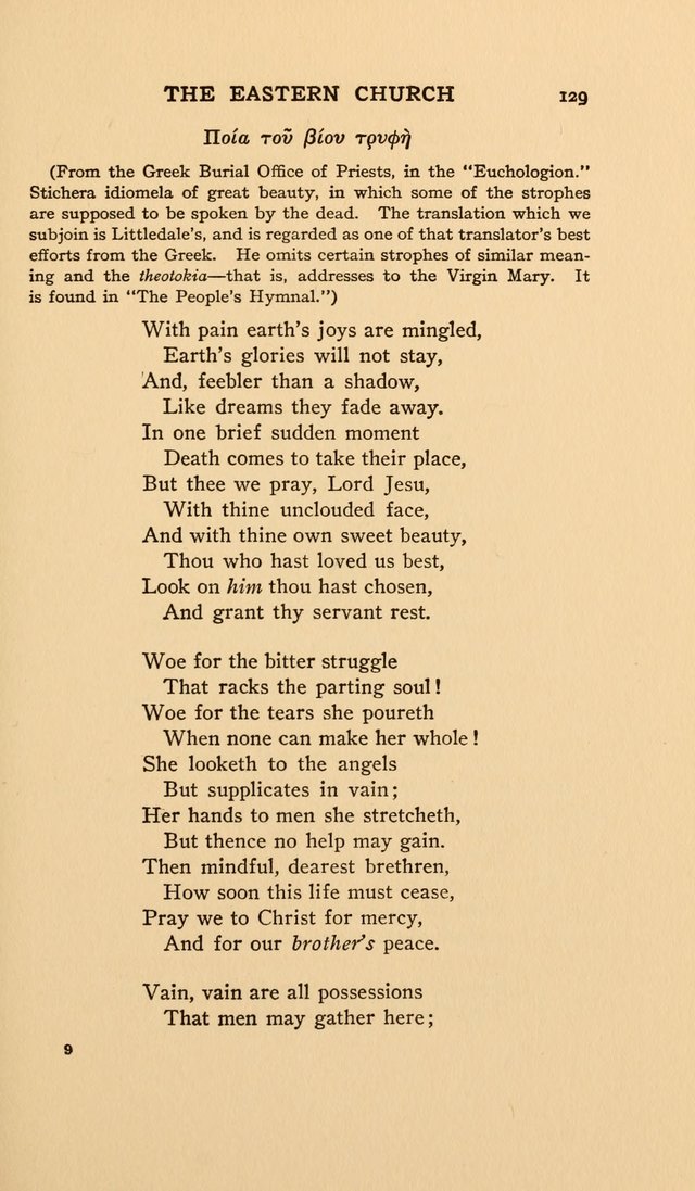 Eighth-century Greek poet John of Damascus (b. Damascus, c. 675; d. St. Sabas, near Jerusalem, c. 754) is especially known for his writing of six canons for the major festivals of the church year. John's father, a Christian, was an important official at the court of the Muslim caliph in Damascus. After his father's death, John assumed that position and lived in wealth and honor. At about the age of forty, however, he became dissatisfied with his life, gave away his possessions, freed his slaves, and entered the monastery of St. Sabas in the desert near Jerusalem. One of the last of the Greek fathers, John became a great theologian in the Eastern church. He defended the church's use of icons, codified the practices of Byzantine chant, and wr…