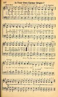 Display Title: Is Your Own Corner Bright?First Line: You might feel that you could shineTune Title: [You might feel that you could shine]Author: James RoweDate: 1929