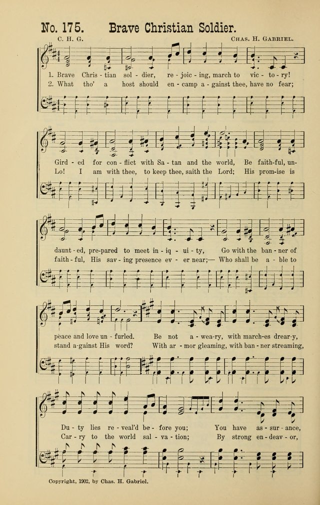 Tune Title: [Brave Christian soldier, rejoicing, march to victory]First Line: Brave Christian soldier, rejoicing, march to victoryComposer: Chas. H. GabrielDate: 1902
