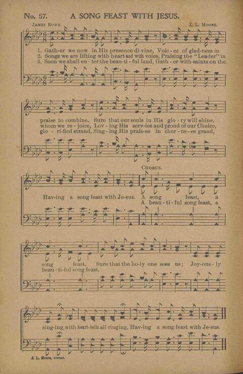Tune Title: [Gather we now in His presence divine]First Line: Gather we now in His presence divineComposer: J. L. MooreIncipit: 54332 11712 43221Date: 1913