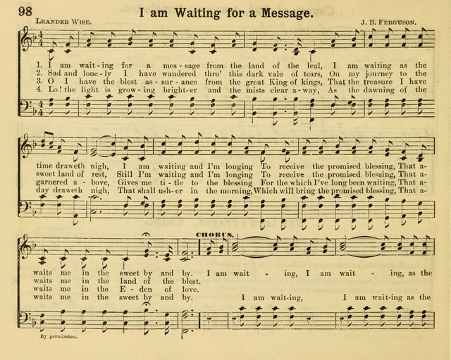 Tune Title: [I am waiting for a message from the land of the leal] First Line: I am waiting for a message from the land of the leal Composer: J. B. Ferguson Incipit: 51334 33213 21653 Date: 1886