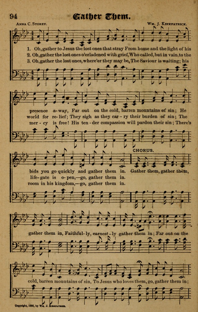 Tune Title: [Oh, gather to Jesus the lost ones that stray]First Line: Oh, gather to Jesus the lost ones that strayComposer: Wm. J. KirkpatrickIncipit: 13165 35612 11444Date: 1888