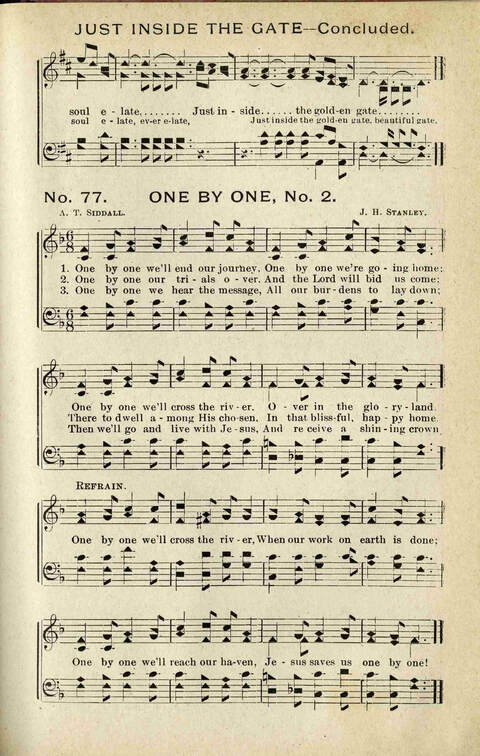 Tune Title: [One by one, we'll end our journey]First Line: One by one, we'll end our journeyComposer: J. H. StanleyIncipit: 12345 65312 35432Key: F Major or modalDate: 1903