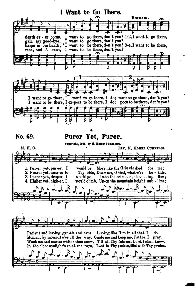 M. Homer Cummings was born near Pickaway, August 23, 1890, and was graduated from Trevecca College, Nashville, Tennessee, in 1909. After spending a year in the University of Chattanooga, he entered the ministry of the Methodist Episcopal Church in 1911. Since then he has written more than sixty hymns, the more popular being these: "My Lord and King," "There is a Gladness," "What Will You Do with Jesus?" "Come Where the Blessings Fall," The Gospel According to You," "Jesus Is the One You Need." Others appear in "Echoes from Beulah," published by the author at Ripley, W. Va. Mr. Cummings has also written "You Are My Sweetheart," a secular song that has been well received by the music public. His parents are H. M. Cummings and wife, Pickaway.…