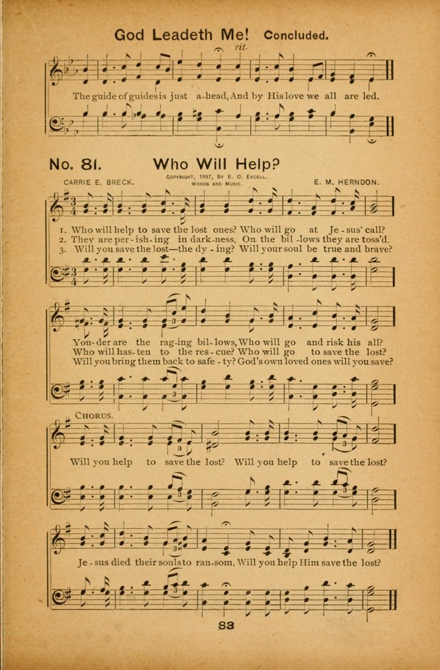 Tune Title: [Who will help to save the lost ones?]First Line: Who will help to save the lost ones?Composer: E. M. HerndonIncipit: 33334 13355 52543Date: 1897