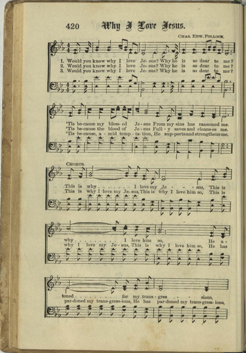 Charles Edward Pollock USA 1853-1928. Born at Newcastle, PA, he moved to Jefferson City, MO, when age 17. He was a cane maker for C W Allen. He also worked 20 years for the MO Pacific Railroad, as a depot clerk and later as Assistant Roadmaster. He was a musician and prolific songwriter, composing 5000+ songs, mostly used in Sunday school settings and church settings. He took little remuneration for his compositions, preferring they be freely used. He produced three songbooks: “Praises”, “Beauty of praise”, and “Waves of melody”. In 1886 he married Martha (Mattie) Jane Harris, and they had three children: Robert, Edward, and a daughter. He died in Merriam, KS.